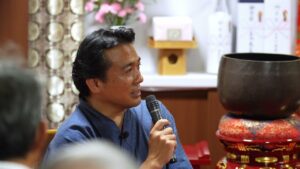 1994年に福岡県古賀町(当時)久保の地に「瑞祥院」を開堂。その後、一時閉堂、花見の里での再開を経て、2009年に現在の福岡県福津市在自の地に本道場を開堂しました。「瑞」は眉間白毫相の光、すなわち神通のことで、修行を積み上げ神通力を身につけ、この世の薄幸な人々を救済することにより道が開かれていくことを意味します。「祥」は吉祥弁財天龍王様の祥、すなわち幸先よく道を開拓していくことで、布教伝道の最先端で先陣を張って、この法の発展のために尽くしていくことを意味しています。”お寺”というものの敷居の高さを無くし、どのような方にも開かれたお寺を志しております。